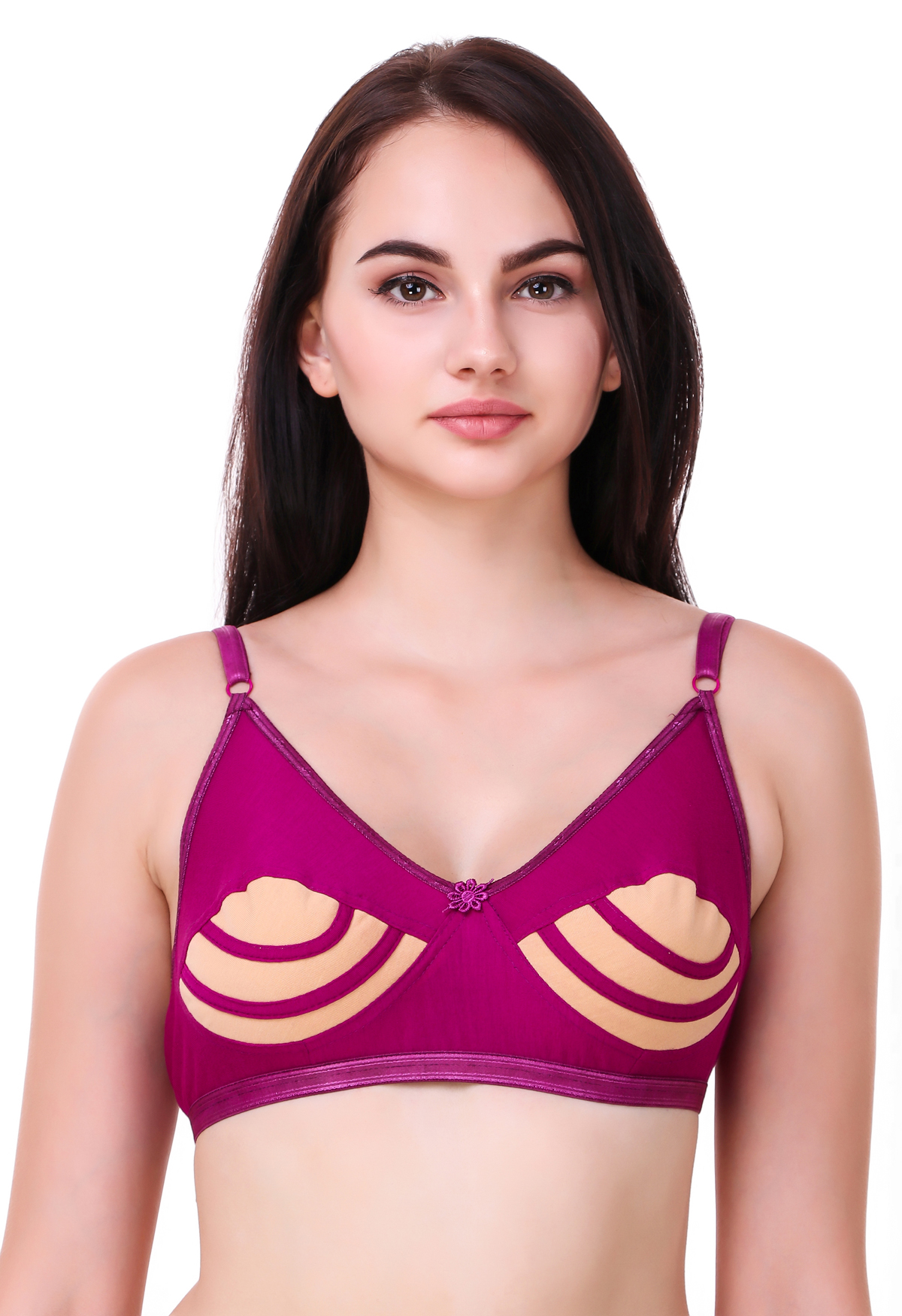 Step into all-day comfort and confidence with this stylish and breathable cotton bra. Designed for everyday wear, this non-padded and non-wired bra offers natural shaping and a soft feel against the skin. The unique color-blocked striped cup design in magenta and beige adds a fashionable touch, making it both functional and visually appealing. Featuring adjustable straps and a secure back hook-and-eye closure, this bra ensures a custom fit and reliable support without sacrificing comfort.